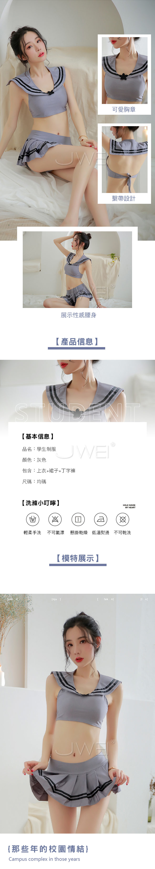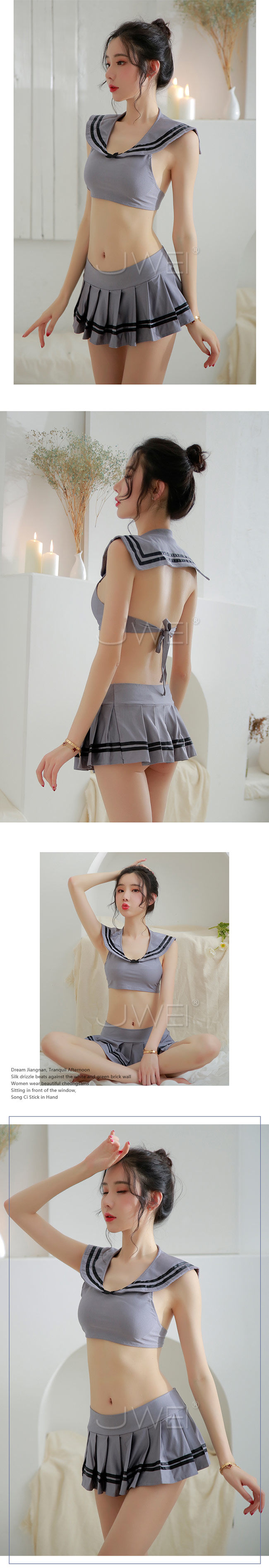 熱戀禁區.性感露背綁帶分體式學生制服2件組