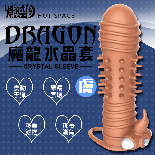 爆熱空間HOT SPACE‧魔龍激情鎖精矽膠老二單頻震動加長套-膚色
