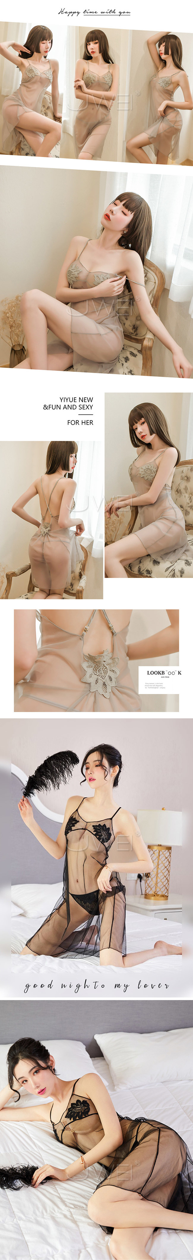 ◇◆獨佔月夜.透視刺繡性感吊帶睡衣(黑色)◆◇