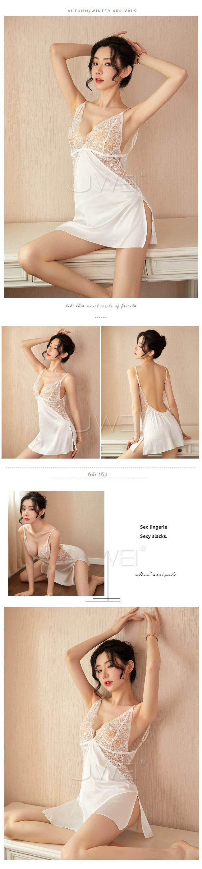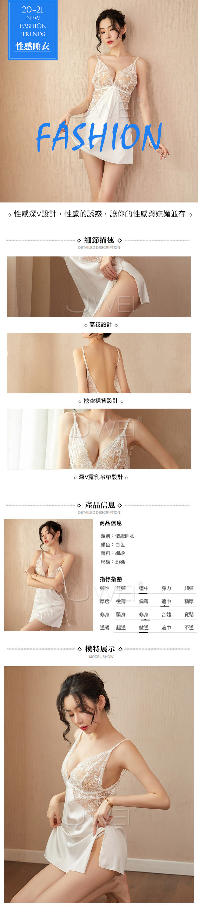 甜甜軟糖.深V透視蕾絲吊帶睡衣(白色)