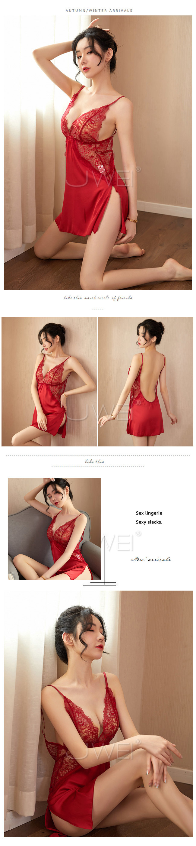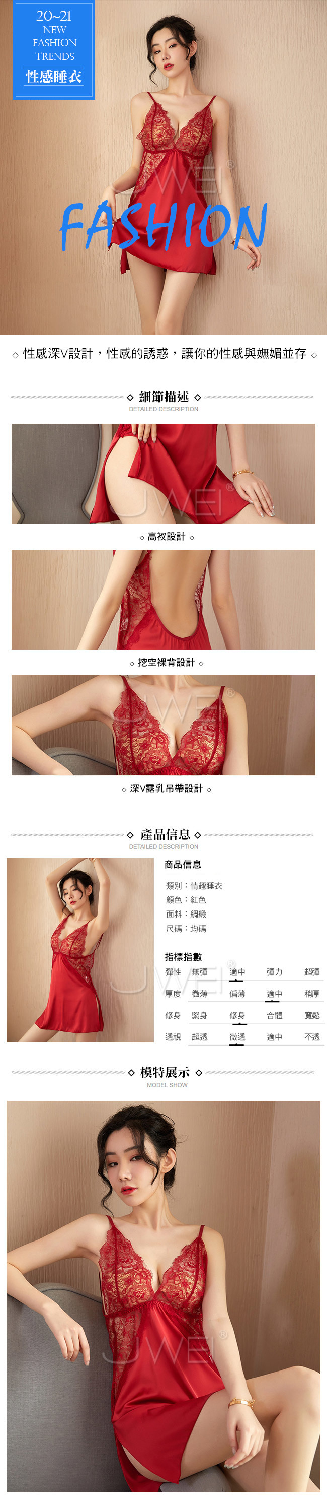 甜甜軟糖.深V透視蕾絲吊帶睡衣(紅色)