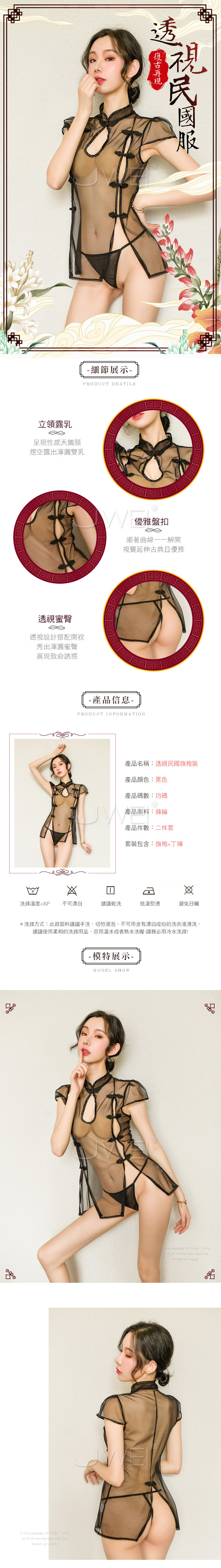 優雅盤扣順著曲線一一解開,搭配薄紗設計若隱若現,