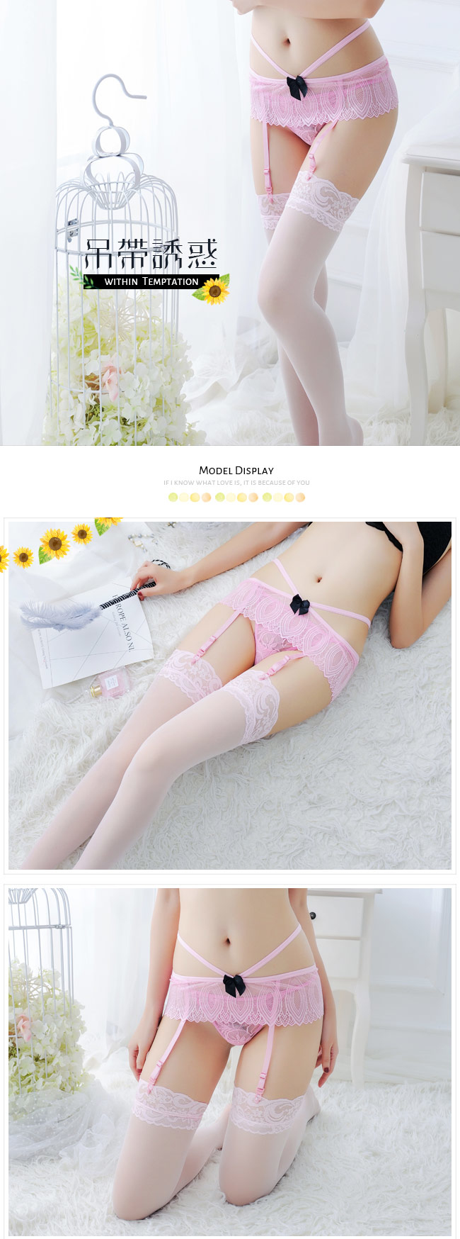 百媚甜心.蕾絲花邊吊襪帶三件組(粉)