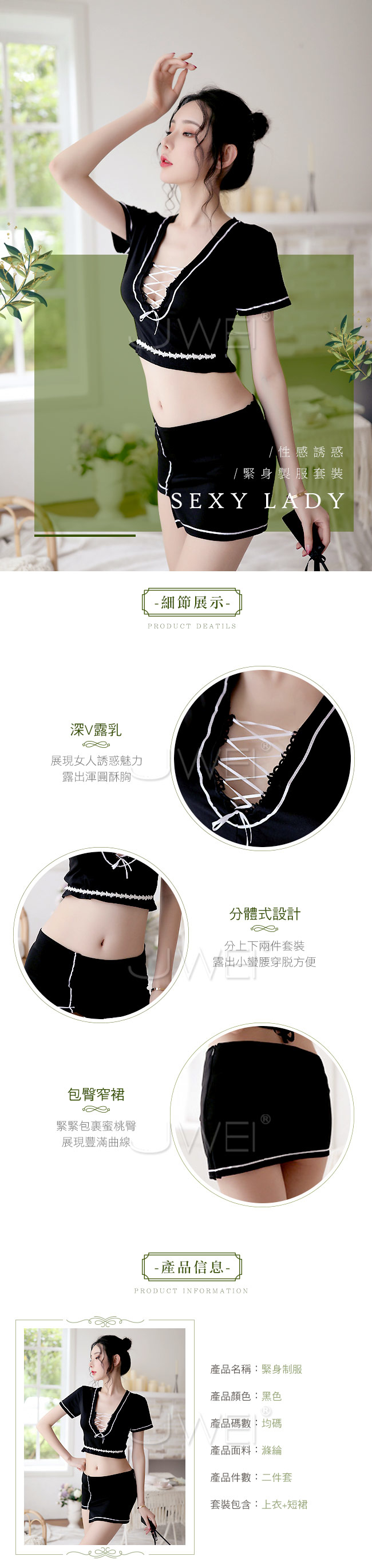性感深V領設計,展現傲人雙峰,