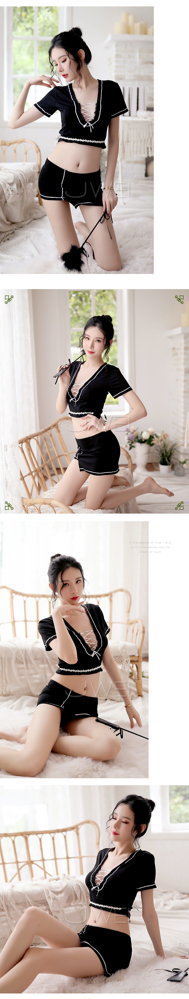 ◆內容物:上衣x1、短裙x1、蕾絲束帶x1