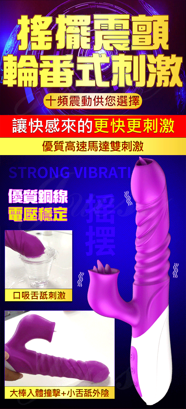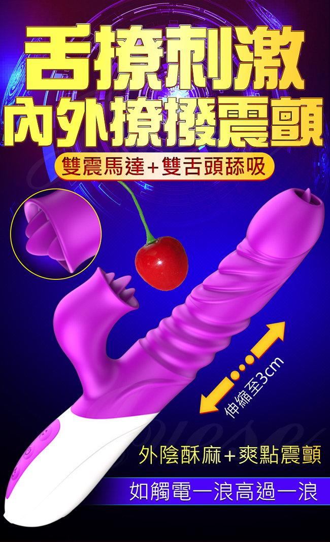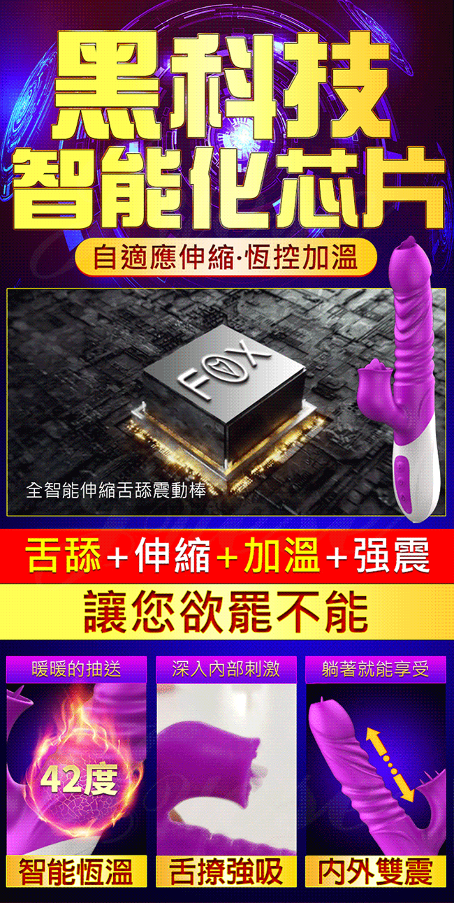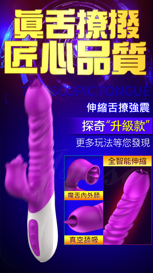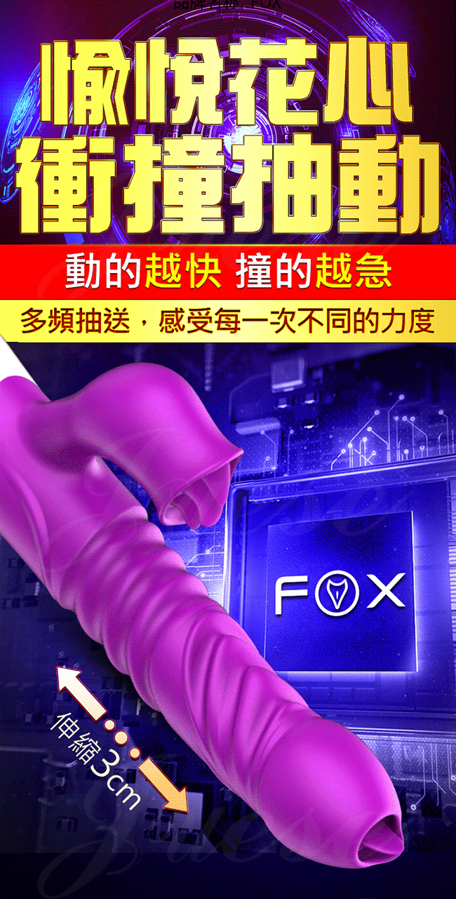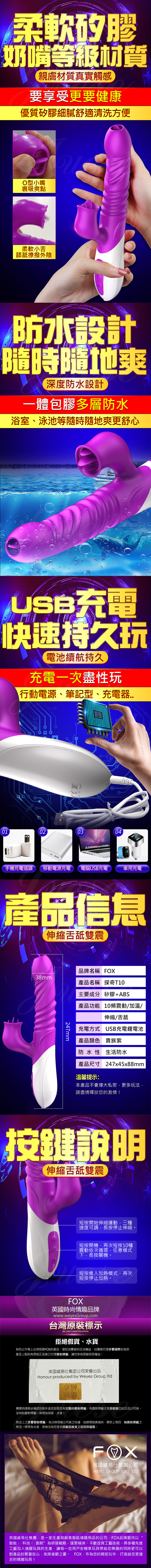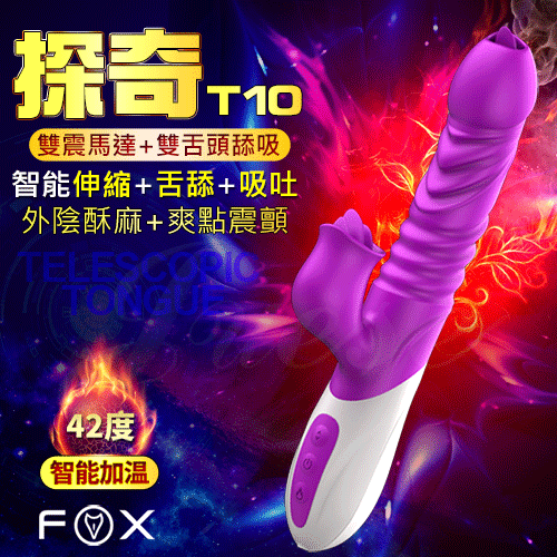 英國FOX-探奇T10 10頻震動伸縮雙舌舐震動棒-紫
