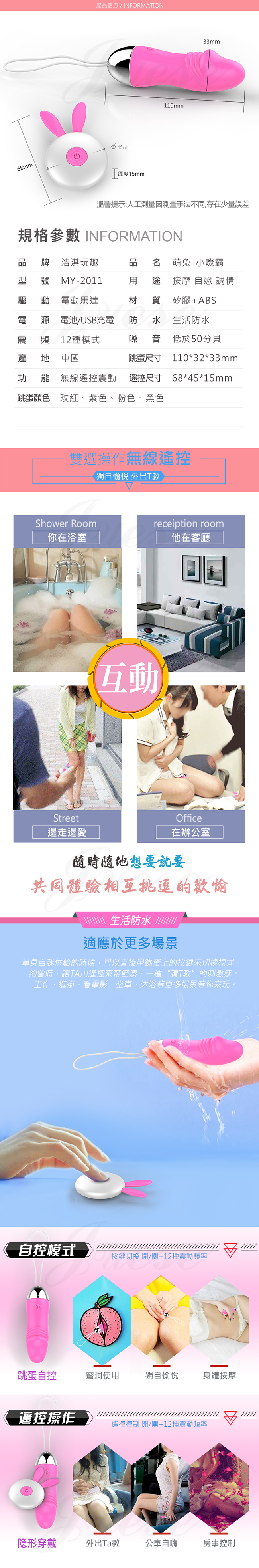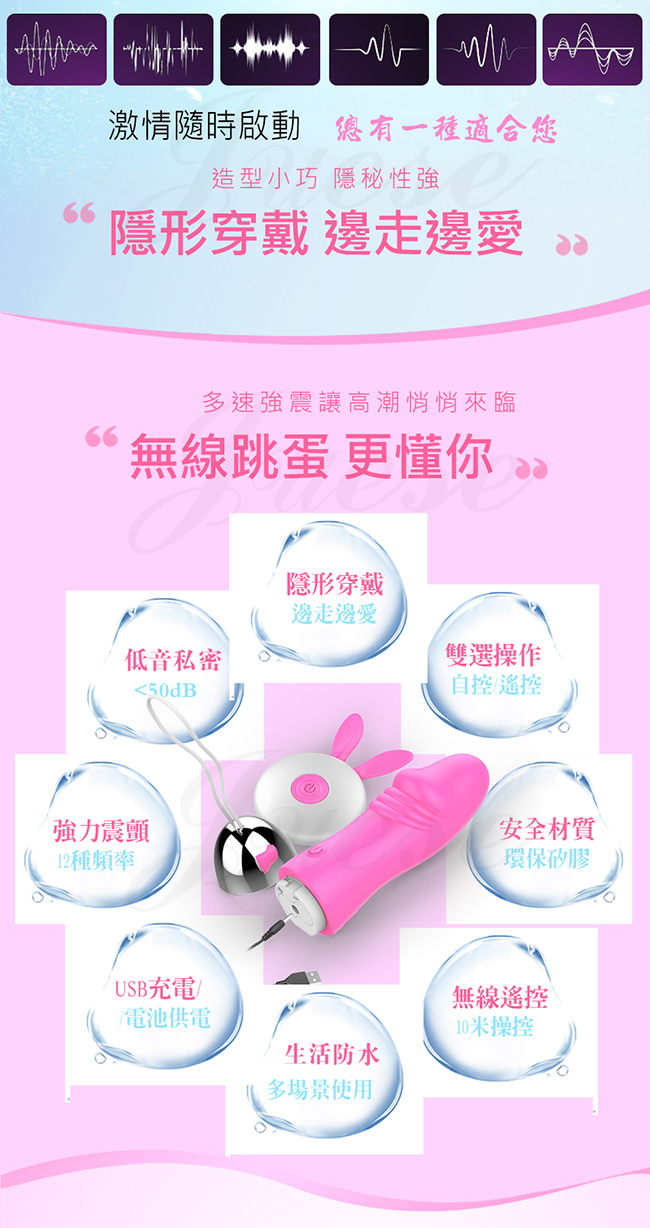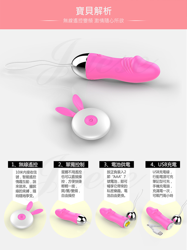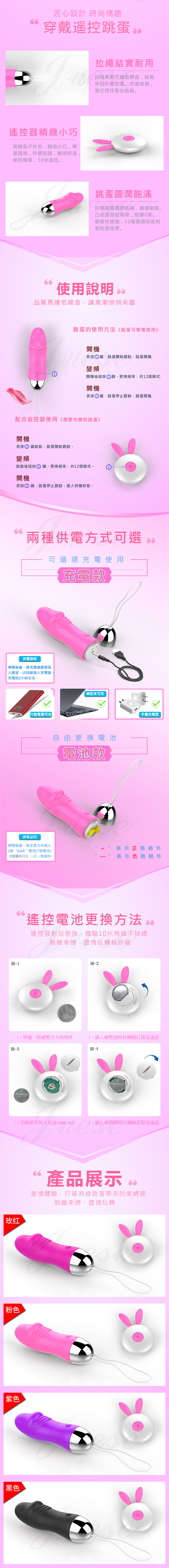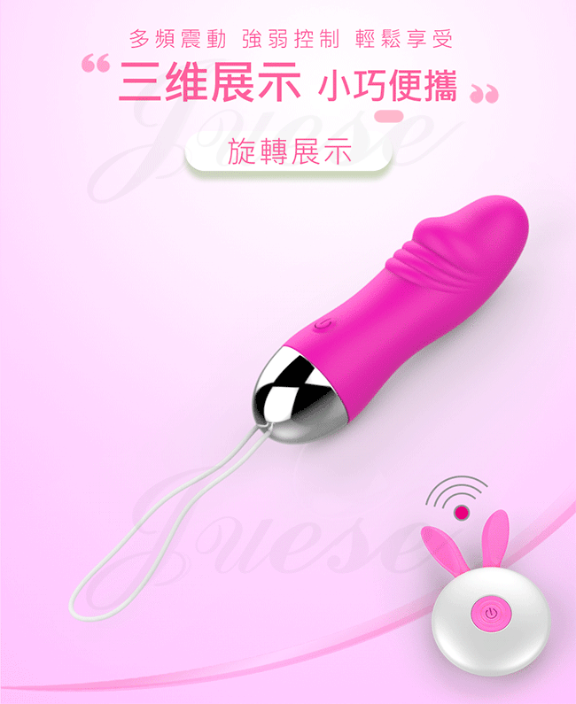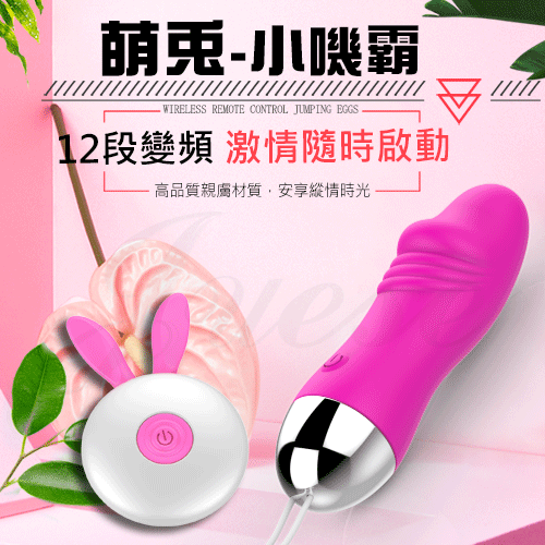 萌兔小嘰霸 12段變頻萌寵柔軟矽膠充電遙控跳蛋-玫紅