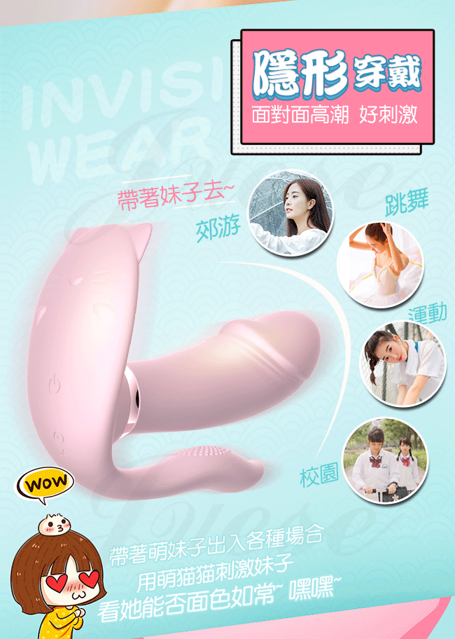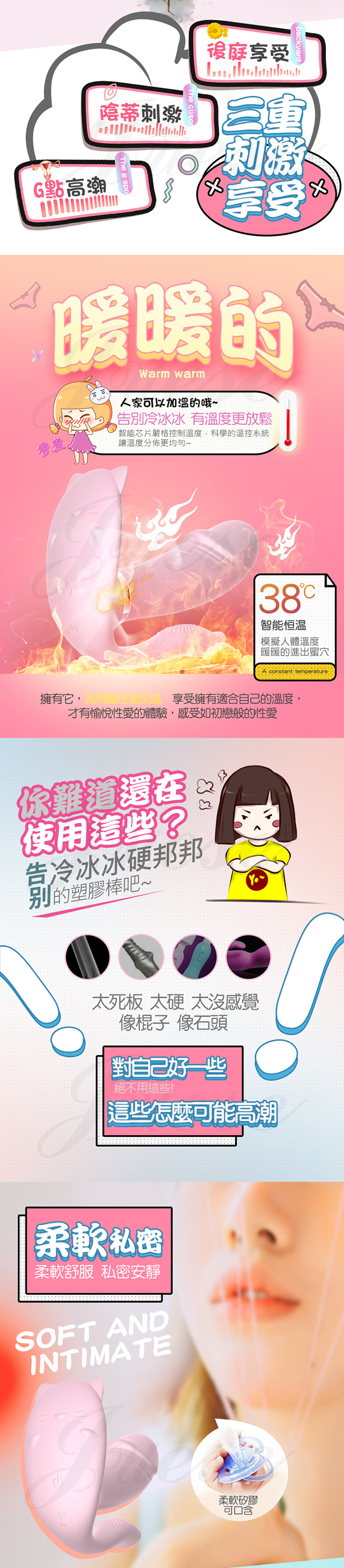 萌貓 智能加溫 7段變頻遙控穿戴按摩棒-粉(陰蒂+G點+後庭)
