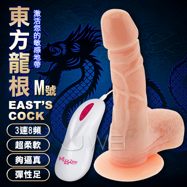 謎姬 MizzZee.東方龍根 3速8頻USB充電逼真老二防水按摩棒-EAST(M)