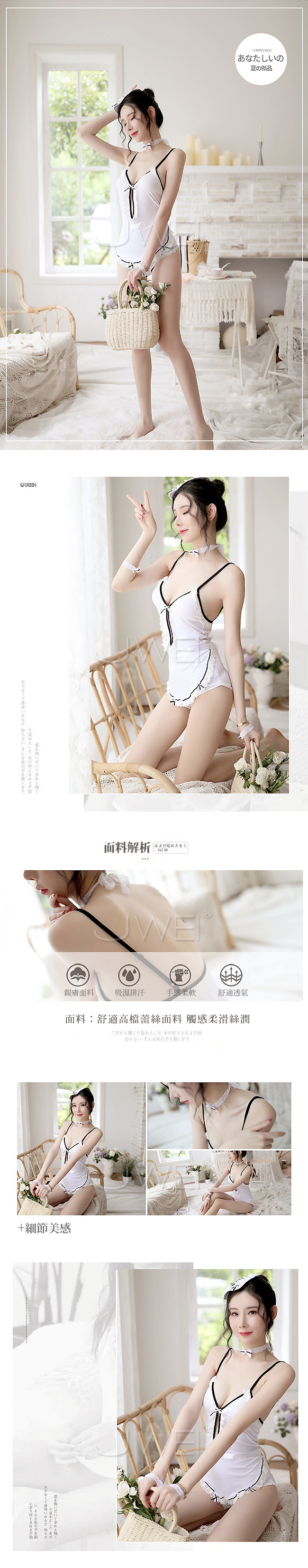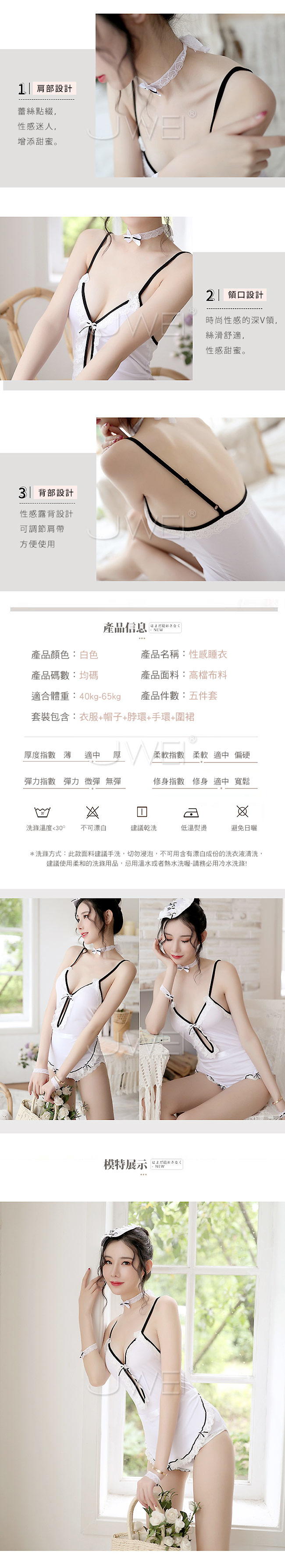 貼心俏佳人.V領蕾絲女僕套裝五件組
