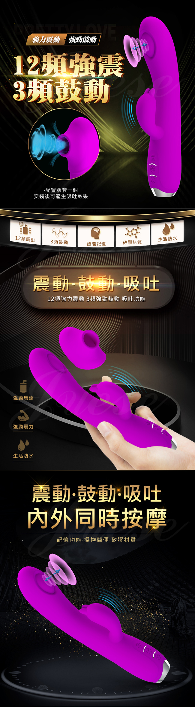里吉娜 12頻震動x3頻鼓動 智能記憶震動按摩棒-紫