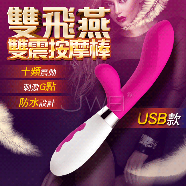 雙飛燕.10段變頻雙馬達撩蒂G點防水按摩棒-玫紅色(USB款)