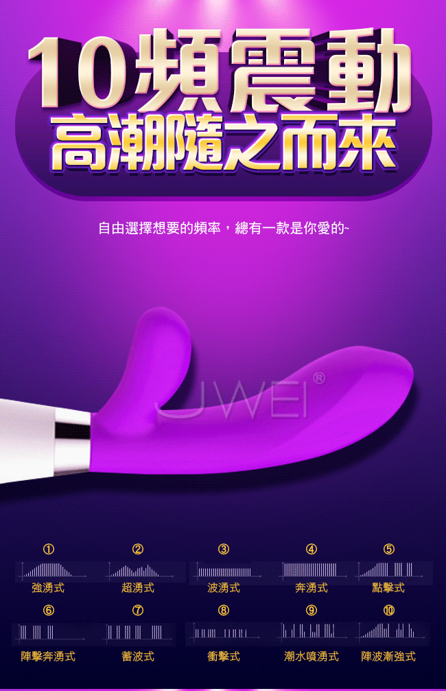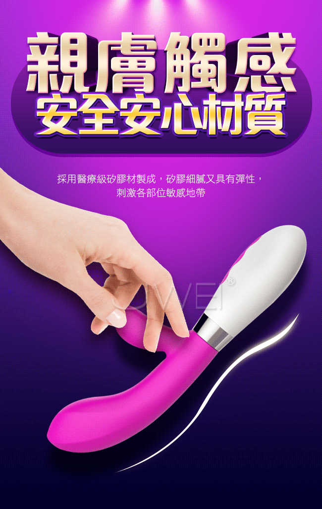 雙飛燕雙點震動按摩棒共兩顆馬達同步震動,同時刺激陰蒂及陰道,盡情迎接雙重高潮到來。擁有10段變頻高潮迭起自由選擇想要的頻率,總有一款是你愛的~採用醫療級矽膠材製成,矽膠細膩又具有彈性,刺激各部位敏感地帶。靜音低噪設計搭配生活防水讓您可以想愛就愛盡享於水之歡喔~