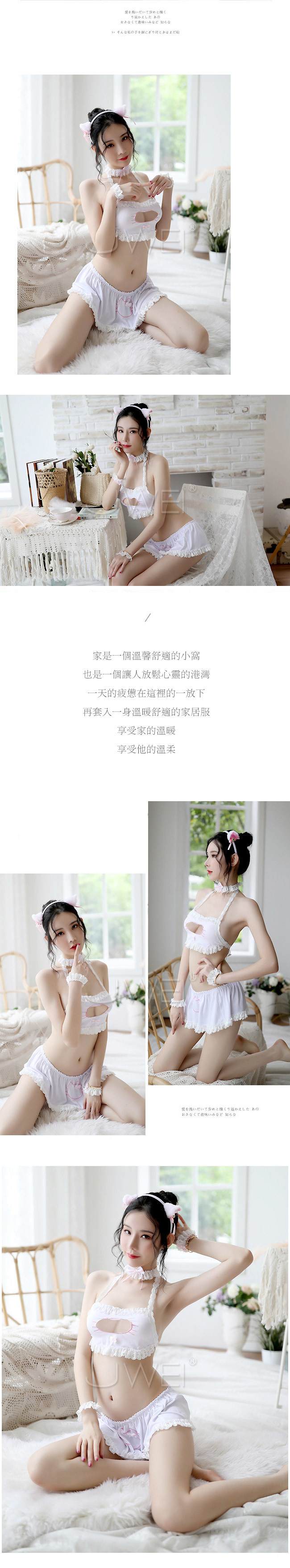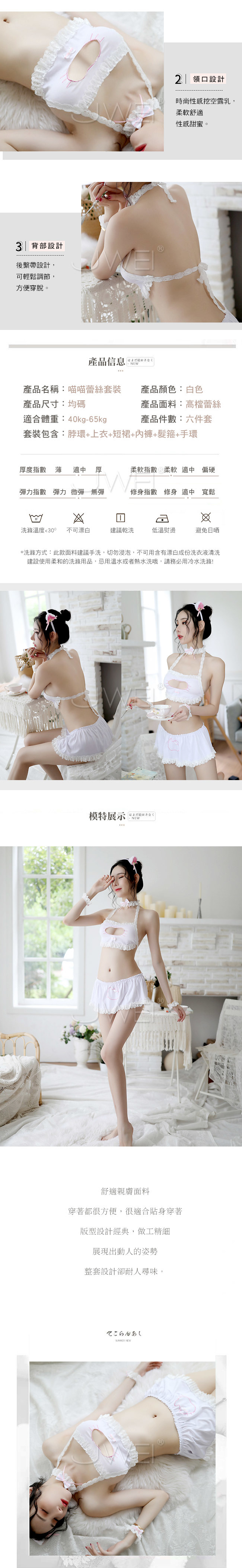 青春印記.分體式蕾絲喵喵制服套裝六件組