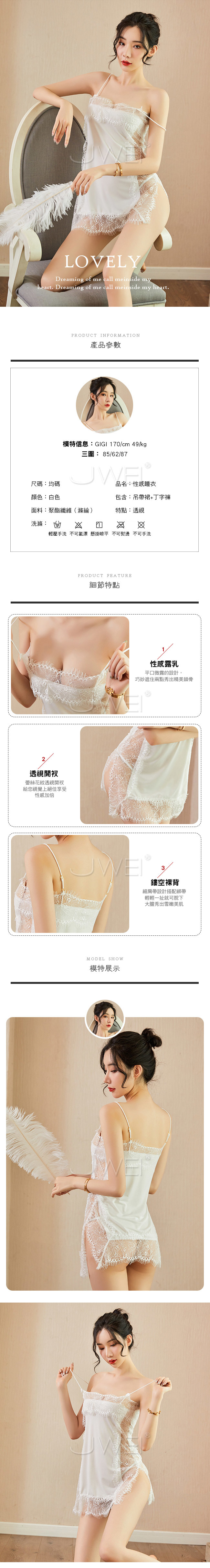 風情女郎.側開衩蕾絲花邊性感吊帶睡衣(白色)