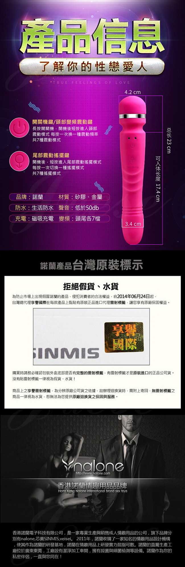 香港Nalone-搖妮Yoni 7段變頻震動搖擺雙頭AV按摩棒-尾部加溫
