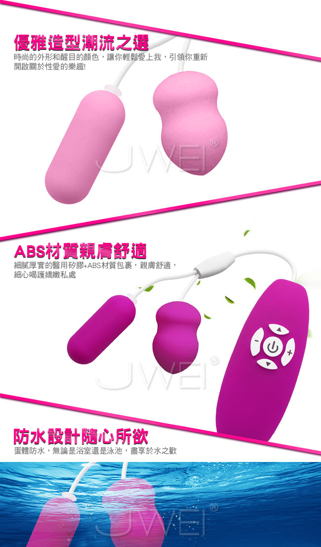 讓您高潮不已狂跳雙跳蛋擁有強勁震動滿足您不同愛愛需求,此款小巧便攜採USB直插式充電方便,可隨時帶著走方便游走您身上每個敏感點。採用親膚材質製成,細心呵護您嬌嫩私密處。並且蛋體防水,能讓您不管在浴室還是泳池都能盡享魚水之歡呦~
